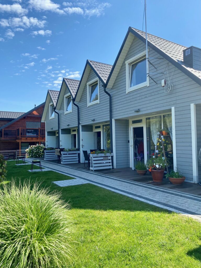 Każdy domek wyposażony jest w przestronny salon, w pełni funkcjonalną kuchnię, dwie sypialnie oraz taras z grillem.